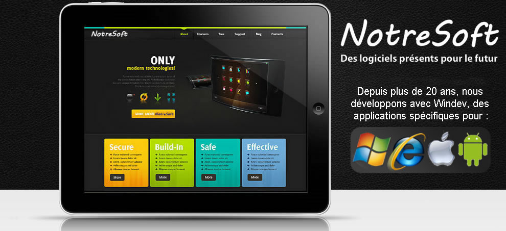 NotreSoft accompagne les entreprises en leurs proposant des logiciels les plus adaptés à leurs besoins tout en restant puissants, conviviaux et simples d'utilisation. Nous restons en permanence à l'écoute des utilisateurs.